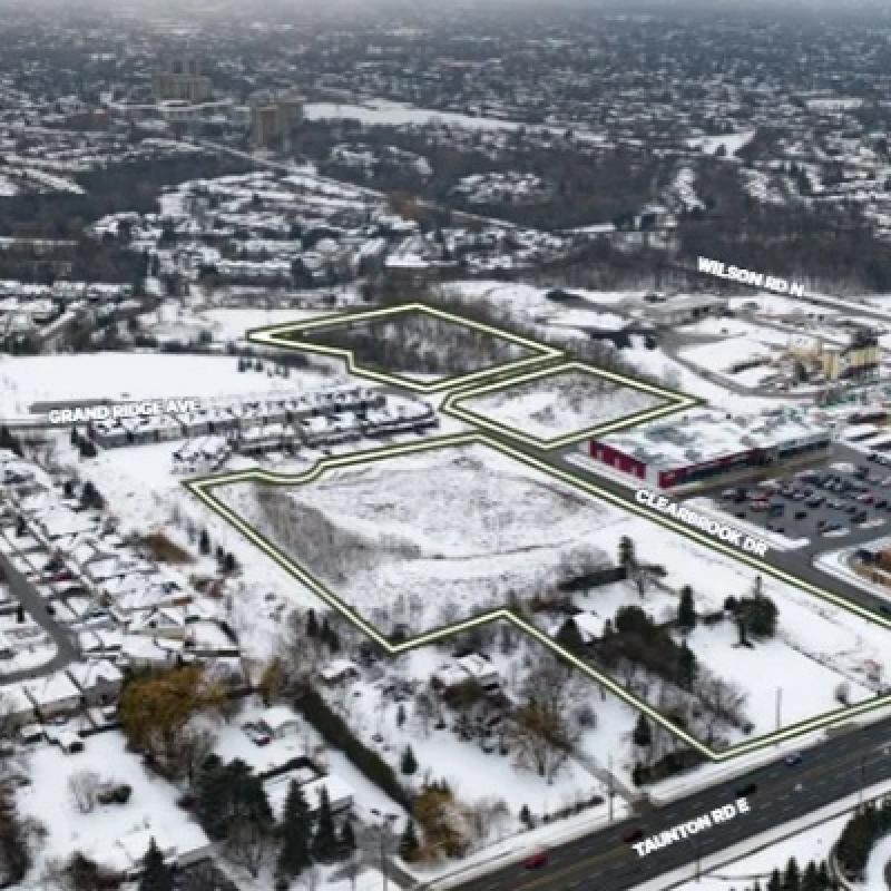 Taunton Road East and Clearbrook Drive in Oshawa is a 14.47-acre property planned as three blocks.